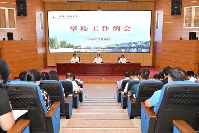 7月18日,学校召开工作例会,党委书记张建华出席会议并讲话,校长管英俊总结回顾2025年上半年工作并安排部署暑期前后重点任务,党委副书记徐杰主持会议。学校党政领导班子成员王承高、梁淑娟、孔令军、成敏、李士保、田玉胜、王世群参加会议。