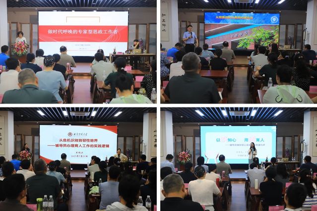 山东大学国际教育学院党委副书记王璐璐以《做时代呼唤的专家型思政工作者》为题,提出“专业素养是立身之本、创新思维是发展之要”的核心观点,明确界定专职辅导员“专家型”“领航员”的双重角色定位,为职业发展指明方向;天津大学教授刘岩以《从现象级职业看高校辅导员作为超级变量的认知升级》为题,分享辅导员作为“超级变量”在学生工作中的实践经验与深刻感悟,为辅导员的职业认知提供全新视角;曲阜师范大学心理学院党委副书记朱伟卫围绕《从危机识别到韧性培养:辅导员心理育人工作的实践逻辑》,通过详实数据系统讲解心理育人工作的具体路径与实施方法,为开展心理育人工作提供实践指导;中国矿业大学资源学院副院长王梦倩以《以谈知心 用话育人——辅导员做好谈心谈话工作的道与术》为题,聚焦谈心谈话的重要性及“三三三”工作法等内容,助力辅导员提升业务能力。