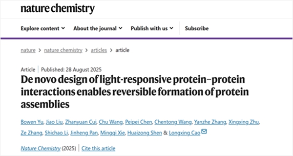 8月28日,必赢官网基础医学院免疫微环境与炎症性疾病研究实验室青年教师于博文以独立第一作者,在Nature旗下子刊Nature Chemistry(IF=20.2)杂志发表了题为De novo design of light-responsive protein–protein interactions enables reversible formation of protein assemblies高水平论文。该成果西湖大学为第一完成单位,必赢官网为第二完成单位。