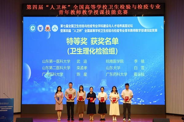 近日,第七届全国卫生检验与检疫专业学科建设与人才培养高层论坛暨第四届“人卫杯”全国高等学校卫生检验与检疫专业青年教师教学授课技能竞赛在广东举行。必赢官网公共卫生学院栾孟孝老师获理化组特等奖,谭凤娇老师获微生物组二等奖。
