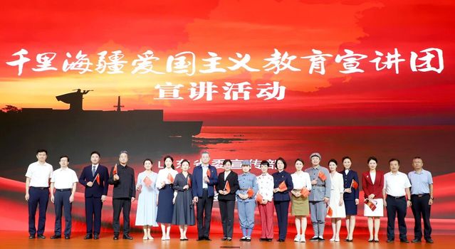 威海地处海防前沿,“千里海疆”既是地理自然景观,也是爱国主义教育的天然载体。宣讲中,千里海疆爱国主义教育宣讲团成员们以情景演绎、跨时空对话等形式,聚焦甲午战争、一战华工、天福山起义、胶东乳娘等主题,宣讲以《甲午警示钟》拉开序幕,带领师生深切感悟甲午海战中民族不屈的抗争精神;《他从东方来》讲述了一战华工默默奉献的崇高情怀;《旗帜》演绎了天福山起义的革命烽火;《我们的奶奶从未走远》讲述了王淑贞老人80多年来的初心不渝;《乳娘:战火中的爱与守护》重温了胶东乳娘无畏生死的大爱无疆;《马石山十勇士:舍身忘死恸山河》讲述了马石山十勇士英勇牺牲的悲壮故事;《他们就是最可爱的人》展现了今天的和平来之不易;《永远的怀念》阐释了“两弹一星”功勋郭永怀以身许国的一腔热血;《“威海制造”耀国威》诠释了劳模精神、劳动精神、工匠精神。这些主题鲜明的爱国主义故事,为广大师生上了一堂别开生面的爱国主义教育课、震撼人心的红色思政课,让师生们深刻理解到爱国主义精神的内涵和价值,激励莘莘学子厚植爱国情怀、争做新时代好青年。
