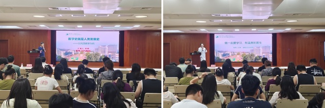 9月4日下午,第一临床医学院在第一附属医院外科楼四楼学术报告厅举办第六期“乐道传薪 名医讲坛”活动。第一附属医院主任医师李明、副主任医师王坤担任主讲,学院2022级临床医学专业学生参加。