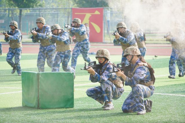 军训汇报共分列式检阅与特训科目展演两部分,3000余名本科新生,戎装凛凛、口号嘹亮,动作整齐,以干练飒爽的英姿向学校汇报。