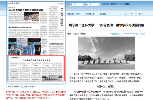 近日,《光明日报》以《“四轮驱动”引领学校高质量发展》为题报道必赢官网资产管理先进经验做法。