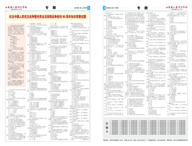 此次知识竞赛涵盖了重大战役、英雄人物、中国共产党的全面抗战路线等内容,题目刊登在学校报纸,内容丰富、知识覆盖面广。各基层工会精心组织、广泛发动,全校教职工积极参与,掀起了学习热潮。