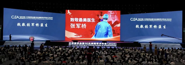 会议开幕式上,播放了在坦桑尼亚因救人而英勇牺牲的2004级校友麻醉医师张军桥的纪念视频,学院临床麻醉学教研室主任王德伟在视频中从授课老师的角度回顾了张军桥在学校求学经历,上学期间就展示出勤奋好学、敢想敢做且善于思考的优秀品质。附属医院张军桥的同事讲述了张军桥在工作期间对工作充满热爱。大会高度赞扬了张军桥的感人事迹,是医学界尤其是中国麻醉学界的骄傲,如今无数麻醉医生继承张军桥的精神,让他守护生命的信念与医者初心永远传递,“麻醉医生”这一职业也因他的付出更具意义与光彩。