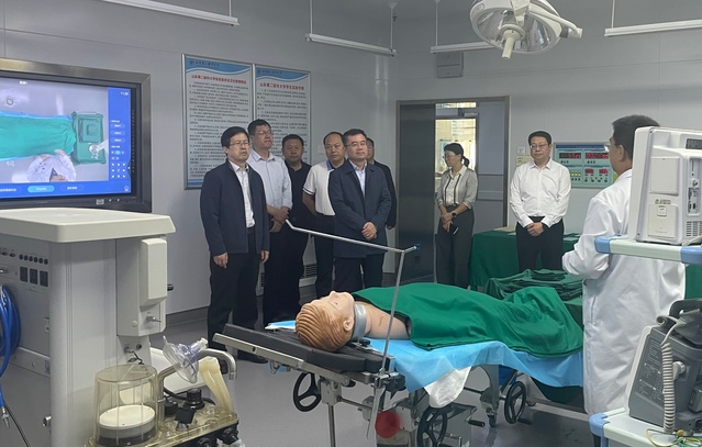 座谈会上,观看了学校宣传片,双方围绕人才培养、学科专业、师资队伍、科学研究和资产管理等多方面进行了深入交流。会后,甘立军一行实地考察了临床能力培训中心。