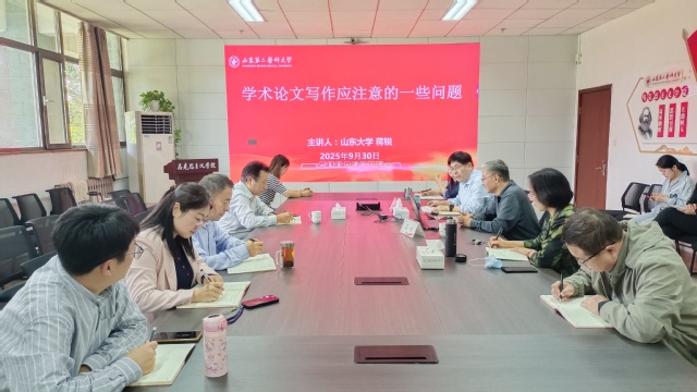 蒋锐教授以《学术论文写作应注意的一些问题》为题,围绕学术论文写作与项目申报两大主题展开系统讲解。在论文写作方面,他重点剖析了选题中“问题意识”的缺失,指出“伪问题”与“千文一面”现象的根源;同时批判了论文格式中的“新八股文”倾向,并就摘要凝练、关键词提取及引文规范等具体问题提出改进建议。在项目申报环节,蒋教授从可行性分析、文献综述、立项必要性、研究思路与内容等方面逐一阐释撰写侧重点,助力教师提升申报质量。与会教师结合自身研究领域与蒋锐教授进行了深入交流。