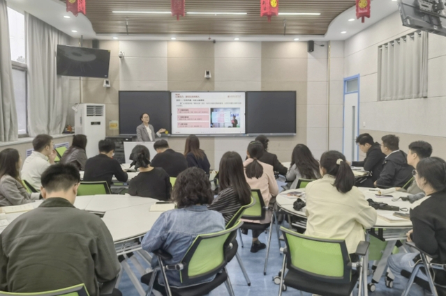 讲座中,赵梦以《立德树人,守望成长,构建“三全育人”视域下的班级发展新生态》为主题,从育人理念与角色定位入手,系统阐述了精细化事务管理中的育人方法、多元化班级建设路径,以及“三全育人”格局下的协同机制。通过典型案例,她分享了将思政教育融入日常管理的具体做法,展示了如何有效激发班级活力、凝聚育人合力。