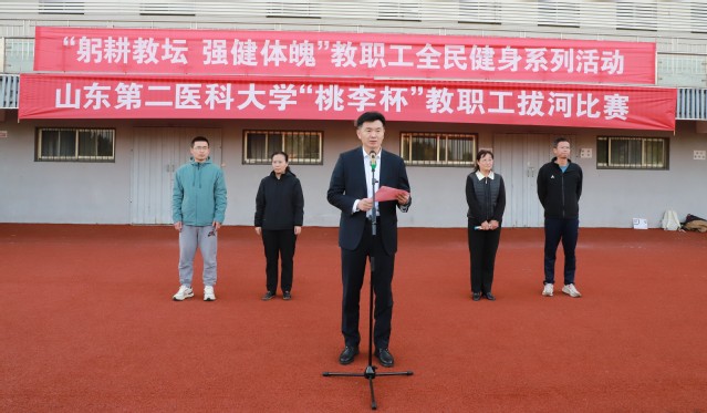 10月22日,“躬耕教坛 强健体魄”教职工全民健身系列活动启动仪式暨“桃李杯”教职工拔河比赛在浮烟山校区运动场举行。党委副书记徐杰出席活动。
