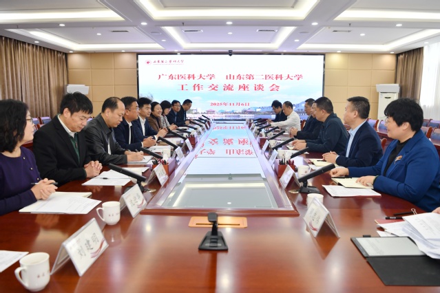 向献兵对学校取得的成绩表示祝贺,介绍了广东医科大学的基本情况、发展成果和“十五五”发展思路等。希望以此次交流考察为契机,加强沟通,深化合作,学习借鉴学校在学科建设、科技创新、人才培养等方面先进做法和“十五五”战略布局、发展策略等,进一步推动学校高质量发展。