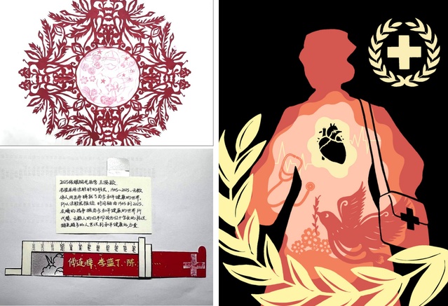 本次大赛以弘扬“红医精神”为主线,设有“海报创作”与“文创设计”两大类别,鼓励学生将医学初心融入艺术表达,以多样形式诠释红医精神的时代内涵。参赛学生积极响应,围绕先辈在革命年代艰苦奋斗、无私奉献的事迹,以及新时代医务工作者坚守岗位、勇担使命的生动实践,创作出书签、剪纸、海报、明信片等一系列富有创意与温度的作品。在创作过程中,同学们主动查阅史料、挖掘红医故事,不仅锻炼了实践与创新能力,更在一笔一画、一剪一贴中,深化了对红医精神的理解与认同。
