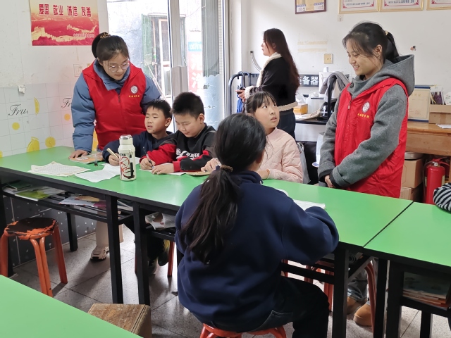 活动现场,学院党员志愿者团队结合社区居民实际需求,开展服务活动。在卫生安全宣发专区,志愿者们通过发放图文并茂的宣传手册、现场讲解示范等形式,向居民普及冬季传染病预防、家庭用电用气安全、垃圾分类规范等实用知识,引导居民树立科学健康的生活理念,增强安全防范意识。在社区青少年活动中心,大家化身“爱心辅导老师”,为社区儿童提供一对一学习辅导。志愿者们结合自身专业优势,针对英语单词记忆、课文朗读、作业难点等问题进行细致讲解,帮助他们梳理知识重点、掌握高效学习方法。同时,志愿者们还注重引导孩子们培养良好的学习习惯,鼓励他们树立积极向上的学习态度,现场学习氛围浓厚而温馨,得到了家长们的一致好评。