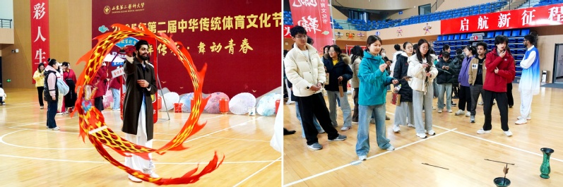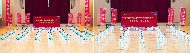 在展演环节,太极拳、八段锦等传统养生健身项目轮番登场,展现出刚柔并济的东方韵律;由中外学生共同演绎的五禽戏,生动体现了文化交融的和谐之美;梅花桩武术表演在闪转腾挪之间,尽显中华武术的深厚底蕴与独特魅力。
