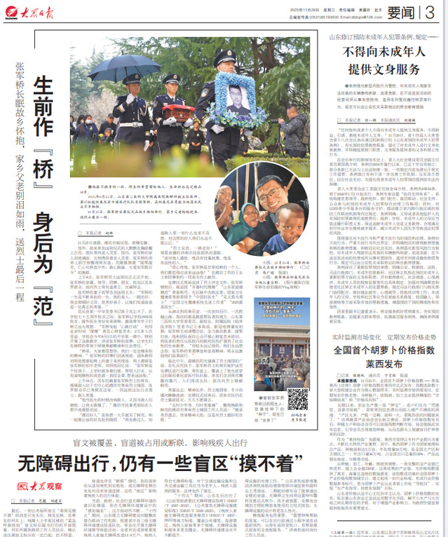 大众日报发布报道:“生前作‘桥’ 身后为‘范’。”