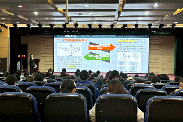 本次大赛全校各学院共76个团队报名参赛,经过激烈角逐,来自临床医学院、公共卫生学院、医学影像学院、康复医学院的9件优秀作品从众多申报项目中脱颖而出,晋级决赛。决赛现场,选手们以PPT为载体,围绕作品的项目背景、技术方案、特色亮点、实用价值及推广前景等核心维度展开精彩阐述。这些作品既彰显了参赛者对医疗辅助器具领域的深刻洞察与专业积淀,更生动展现了他们敢于挑战、勇于创新的青春风采。决赛选手在5分钟内完成作品讲解并用3分钟回答评委提问,选手凭借对作品的深刻理解与专业阐释充分展现自身的实力。评委从科学性、实用性、创新性、可行性等维度精准点评,直指不足并给出专业改进建议,让选手们收获颇丰,更为未来产品更好的研发提供灵感。经过评委综合评定,大赛最终评选出一等奖1项、二等奖2项、三等奖3项。