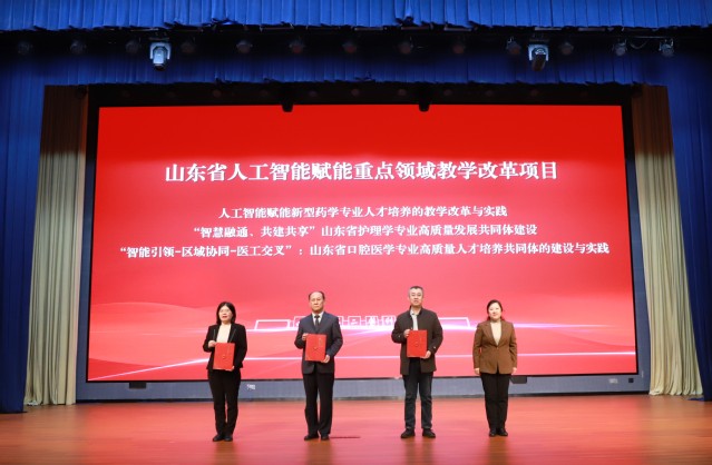 在AI+数智赋能教育教学变革专题会议,华东师范大学沈富可教授作题为《数智化助推高校教育变革》的专题报告;山东第一医科大学李福荣教授作题为《智慧课程建设与教学创新实践》的专题报告;必赢242net官网刘建明教授作题为《AI赋能课程建设:打造复合型医学人才培养新范式》的专题报告。会议推介发布了“医有为大模型”“乐道小济”智慧助手。