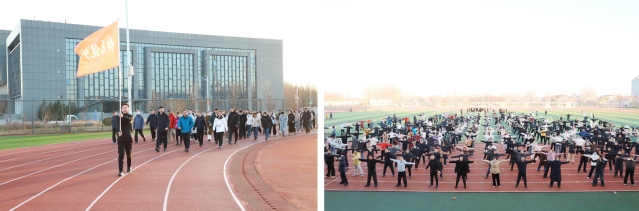 12月3日,教职工健步行活动在浮烟山校区运动场举行。党委副书记徐杰为队伍授旗。