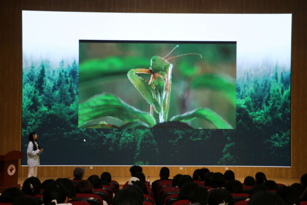 经过初赛激烈的角逐,有5支队伍进入决赛。决赛现场,各位选手结合自己的原创插画,向大家一一介绍自己的创作理念、创作背景、情感表达和意义蕴含。其中作品《舞宴流光与孤径向你:傲慢与偏见》以富有冲击性和对比性的讲解,让观众理解放下偏见,方能见真心;《小生命,大世界》近远景结合,描绘了昆虫的世界,让同学们对微小生命有了更深的认知;《爱丽丝梦游仙境奇遇记》,通过奇幻多样的各种物象,给人以童话世界的体验,鼓励勇敢面对困难,珍惜身边的人,用心去感受世界的美好;《本草灵韵·参引纲目》立足中医药文化多维度,借由人参贯穿中药的采集加工等流程,精彩展现中华医药瑰宝的无穷魅力;《我们仨》通过描绘平凡的日常,生动地诠释克服羁绊、温暖心灵、走向阳光的生活底色。