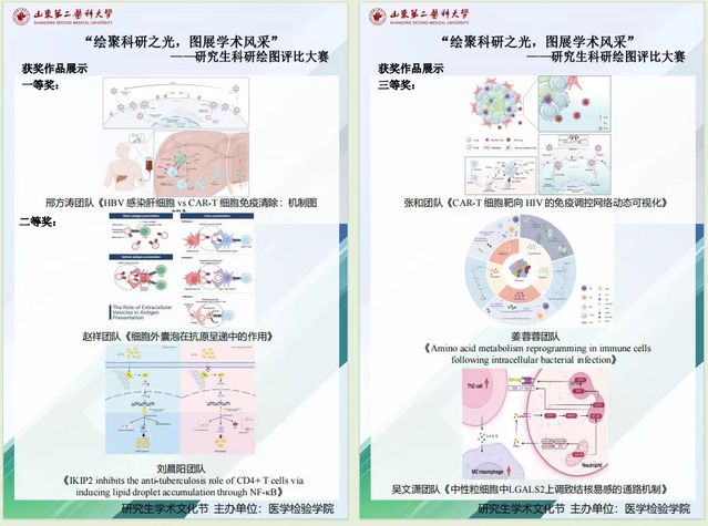 近日,医学检验学院组织开展了“绘聚科研之光,图展学术风采”科研绘图评比大赛,吸引了检验、基础、公卫、药学等各专业研究生的广泛参与。