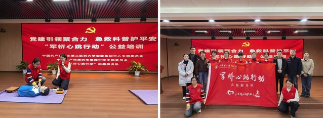 12月19日上午,实验实训中心党支部组织“军桥心跳行动”师生志愿服务队赴潍坊市春晖中学开展“党建引领聚合力,急救科普护平安”公益培训活动。
