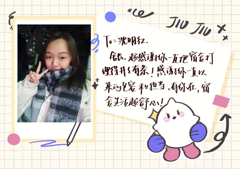 本次活动以线上征集方式展开。核心环节“‘闪光的ta’夸夸你的好舍友”鼓励同学们以手账、海报等创意形式,为室友设计制作个性化“夸夸名片”。另一环节“宿舍IP秀”鼓励同学们以短视频形式记录寝室集体生活,通过镜头展现宿舍生活的真实场景与温馨互动。参赛作品将真挚情感与艺术设计相融合,通过文字与视觉的双重表达,生动展现同学们对室友细致入微的观察、对友谊的真挚赞美以及对集体生活的深刻体悟。作品不仅体现学生良好的审美素养和创新能力,更彰显寝室成员间团结互助、温情相伴的良好风气,反映出我院学子细腻的情感表达和向上向善的精神风貌。最终,评选出一等奖1名、二等奖2名、三等奖3名。