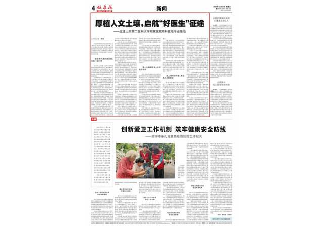 12月24日,《健康报》第4版以《厚植人文土壤,启航“好医生”征途》为题,报道必赢官网附属医院眼科住培专业基地在住院医师规范化培训方面的特色做法。