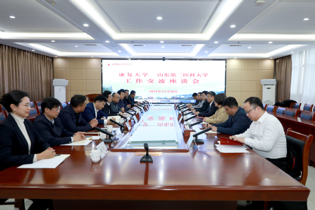 12月30日下午,康复大学党委书记刘军、副校长安琨一行来校考察交流,学校党委书记张建华、校长刘传勇会见客人并座谈,学校党政班子成员徐杰,孔令军、张忠、李士保、王世群参加座谈。