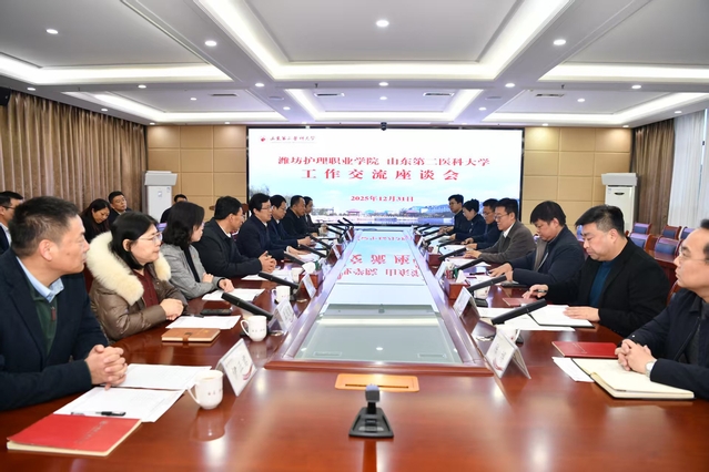 潍坊护理职业学院以及学校有关部门、学院负责人参加座谈。