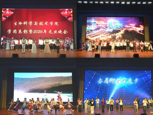 近日,生命科学与技术学院“学团表彰暨2026年‘蛇跃辞年,马奔启岁’元旦晚会”在文体中心报告厅举行。学校学生工作处处长尹世峰、团委副书记田丛丛,学院班子成员、辅导员、教师代表及全体在校生共同观看演出。