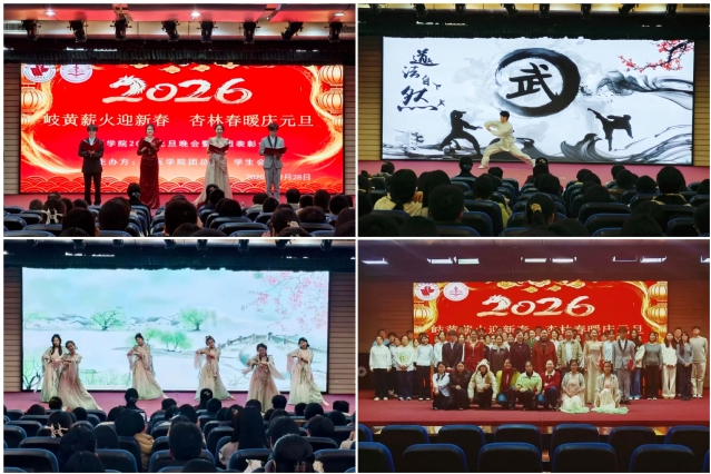 岁序更替,华章日新。近日,中医学院“岐黄薪火迎新春,杏林春暖庆元旦”2026年元旦晚会暨学团表彰会议在学校图书馆演播厅举行。学院党委副书记、副院长汲蕊,教师代表,辅导员与同学们欢聚一堂,共庆元旦佳节。