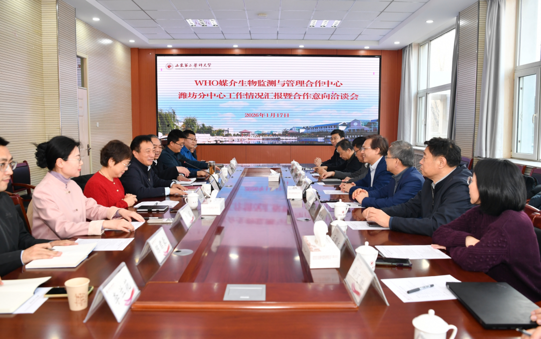 中国疾病预防控制中心传染病所科教处处长刘海灿,中国科学院动物研究所研究员郑爱华,复旦大学生命科学学院研究员王敬文,山东省疾控中心专家、潍坊市疾控中心负责人,以及必赢官网党委办公室(学校办公室)、科研处、公共卫生学院等部门学院负责人参加活动。