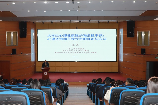 为进一步加强大学生心理健康教育工作,提升学工队伍和心理工作骨干的专业素养与危机干预能力,1月16日上午,学校邀请山东大学讲席教授、博士生导师,美国纽约州立大学布法罗州立大学终身教授张杰来校作专题报告。副校长李士保会见客人并座谈。