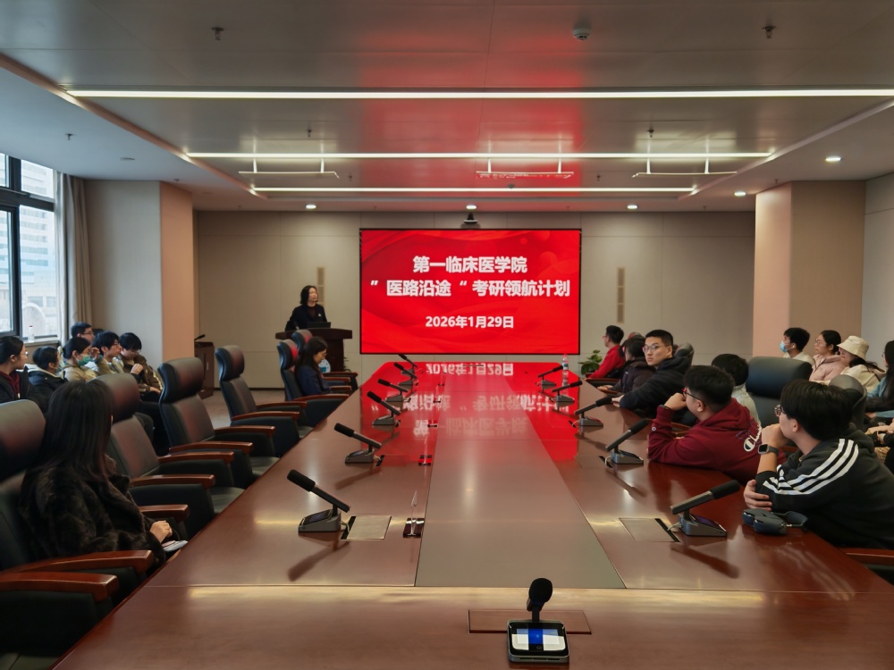 1月29日下午,第一临床医学院在第一附属医院会议室举办“医路沿途”考研辅导。本次活动聚焦学生考研需求,邀请学校研究生处招生科工作人员,第一附属医院张瑞、姜源博士围绕政策解读、经验分享与规划指导,为备战考研的学子们带来了一场内容丰富、贴近实际的专题指导会。学院党委副书记朱红出席。