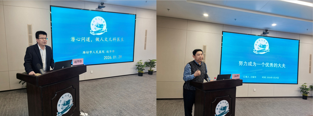 王振华以《努力成为一个优秀的大夫》为题,结合三十年从医经验,诠释“终生学习”理念。他剖析优秀临床大夫的成长进阶,从“看啥像啥”到“追根溯源”,再到成为“领域专家”与“学科引领者”,为学生指明职业路径。同时,立足皮肤科,分享成长秘诀,强调以最优方案疗愈病痛,将“厚德仁爱”融入诊疗全程。赵华锋以《潜心问道,做人文儿科医生》为题,开篇引用裘法祖院士箴言“德不近佛者不可为医,才不近仙者不可为医”,深刻诠释“大医精诚”精神。他结合临床案例,分享儿科在罕见病精准诊疗、基因检测技术突破等领域的创新成果。同时,讲述诸福棠院士等人悬壶济世、著书育人的感人事迹,激励青年学子传承仁心仁术,勇攀医学高峰。