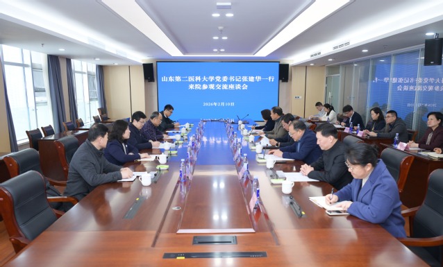 2月10日,学校党委书记张建华、校长刘传勇、副校长梁淑娟一行到附属临沂市人民医院走访调研,市卫生健康委党组书记、主任、市中医药管理局局长刘恒波,附属临沂市人民医院党委书记李凤鸣、院长车峰远陪同调研。