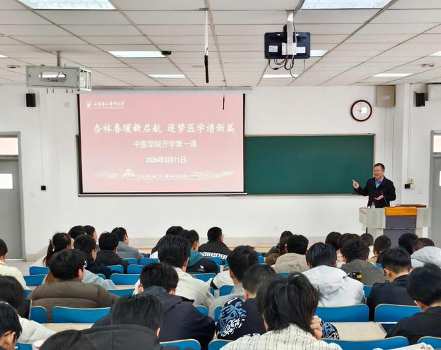 3月11日上午,中医学院举行2026年春季学期“开学第一课”。学院院长孙长岗、党委副书记张劲及全体辅导员出席活动,2023级中医学、中药学专业全体学生到场聆听。本次课程以中医药人才成长与学业规划为核心,旨在为学子新学期成长领航定向。