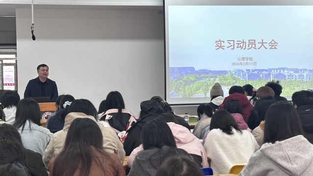 近日,心理学院召开2026届本科毕业生实习动员大会,学院党总支书记李洪先、副书记许婷婷、辅导员,2026届本科毕业生参加会议。