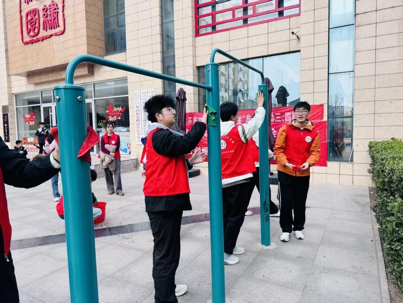 志愿者们统一身着红色志愿马甲,在社区工作人员的带领下,对公共健身区域的健身器材进行认真检查,仔细查看器材是否稳固、零部件是否完好、使用过程中是否存在安全隐患,保障社区居民拥有安全放心的健身环境。随后,志愿者们分工协作,拿起抹布、水桶等工具,对社区健身器材及周边公共设施进行全面清洁。