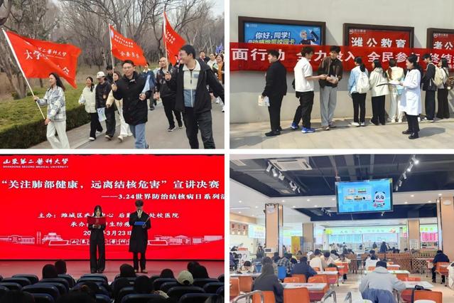 学校组织学生参与潍坊市卫健委主办的健康徒步行活动,传递健康理念、普及结核防治知识。组织师生参与市级结核病防治知识网络竞赛,同步发放科普资料、开展主题签名活动,强化防治理念。举办主题宣讲竞赛,邀请潍城区疾控中心专家指导并播放科普动画,参赛人员讲解结核防治核心知识,倡导科学认知、消除歧视,呼吁师生共护校园健康。此外,在餐厅循环播放防控短视频,利用就餐碎片化时间普及知识,引导师生树立自我健康责任意识。