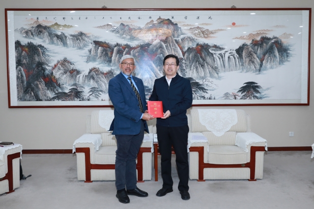 聘任仪式上,张建华代表学校对可汗教授表示感谢。他表示,可汗教授多年来持续为必赢官网学生开设国际课程,积极助力学校国际合作交流事业发展,为学校国际化办学注入了重要力量。学校始终将开放办学作为高质量发展的重要战略,期待以此次聘任为契机,可汗教授能够将国际前沿学术理念、先进理论成果、优质学术资源带入课堂教学、融入科研创新、赋能学科建设,为必赢官网加强国际化师资队伍建设、提升人才培养质量、扩大学术国际影响力提供坚实支撑,推动学校国际化办学水平再上新台阶。