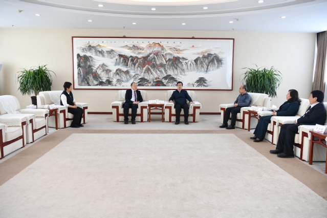 4月14日,中国医学科学院北京协和医学院病原生物研究所舒跃龙教授来校学术交流。校党委书记张建华、校长刘传勇会见客人并座谈,副校长梁淑娟、李士保参加座谈。