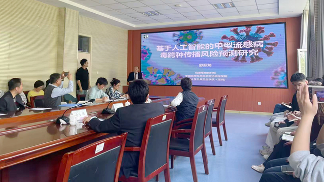 舒跃龙教授在致远楼以“基于人工智能的甲型流感病毒跨种传播风险预测研究”为题,为公共卫生学院师生作了精彩的学术报告,系统讲述了流感病毒研究前沿成果与人工智能技术应用实践,与会师生围绕学术研究、技术落地等问题深入交流,进一步拓宽了学科交叉融合的学术视野,为学院新发传染病智慧监测预警体系建设注入新动能。