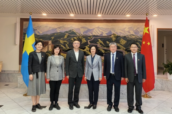 FromMay 20th to 24th, a delegation led by Vice President Lu Guohua visited ChineseEmbassy in Sweden, Uppsala University and Karolinska Institute. The delegation included directors from the International Office, Personnel Office, Affiliated Hospitals (Clinical Medical Schools), and School of Anesthesia. AtChinese Embassy in Sweden, Counsellor for Education Huang Liqiong and Consul ofEducation and Culture Department Xu Yixin met with the delegation. Huang welcomed the delegation and expressed his gratitude for the school’s contribution to the Sino-Swiss cooperation in medical education. He introduced the development ofmedical education, faculty and student exchange programs between Swedish and Chinese universities as well as the relevant support policies, and said that hewould try his best to help build a platform for high-level cooperation and exchange between SDSMU and Swedish universities. After expressing her gratitude to Chinese Embassy in Sweden and the Education and Culture Department for their consistent support to SDSMU, Lu introduced thepurpose of this trip to Sweden, reported SDSMU’s development, renaming, school-running characteristics, talent cultivation, international cooperation projects, and affiliated hospitals, etc. Lu hoped to better promote the exchange and cooperation between SDSMU and the Swedish universities.