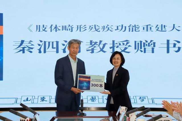 赠书仪式上,卢国华向秦泗河教授颁发捐赠证书,她在致辞中表示,《肢体畸形残疾功能重建大数据》一书生动诠释了秦教授的科学家精神,相信老师和同学们阅读之后一定会深受启发,学校也将做好书籍展览、宣传和研究工作,充分发挥好书籍育人作用。希望同学们以秦教授为榜样,用知识涵养品德,用奋斗书写青春,在推进高水平医科大学建设的新征程中积极作为、绽放风采。赠书仪式由田玉胜主持。