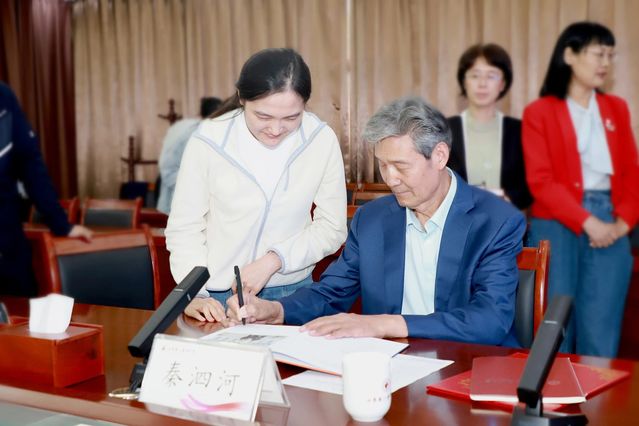 管英俊对秦泗河回到母校表示欢迎,对秦教授始终心系母校,关心和支持学校建设发展表示感谢。她指出,《肢体畸形残疾功能重建大数据》建成了以病例资料为中心的数据库,创立了国内外同行广泛认可的肢体自然重建理念与外科技术体系,是医者仁心、大医精诚的鲜活传承与生动实践。多年以来,秦教授在学校建立肢体畸形残障医学展览馆,在附属医院建立肢体残障功能重建研究所,全力助推学校高质量发展,充分体现了秦教授不忘师恩、反哺母校的赤子情怀。希望能与秦教授开展深度合作,共同为建设健康中国、守护人民健康贡献智慧力量。